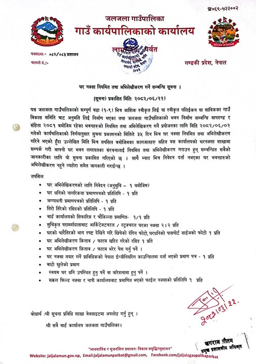 घर नक्सा नियमित तथा अभिलेखीकरण गर्ने सम्बन्धी सूचना !!