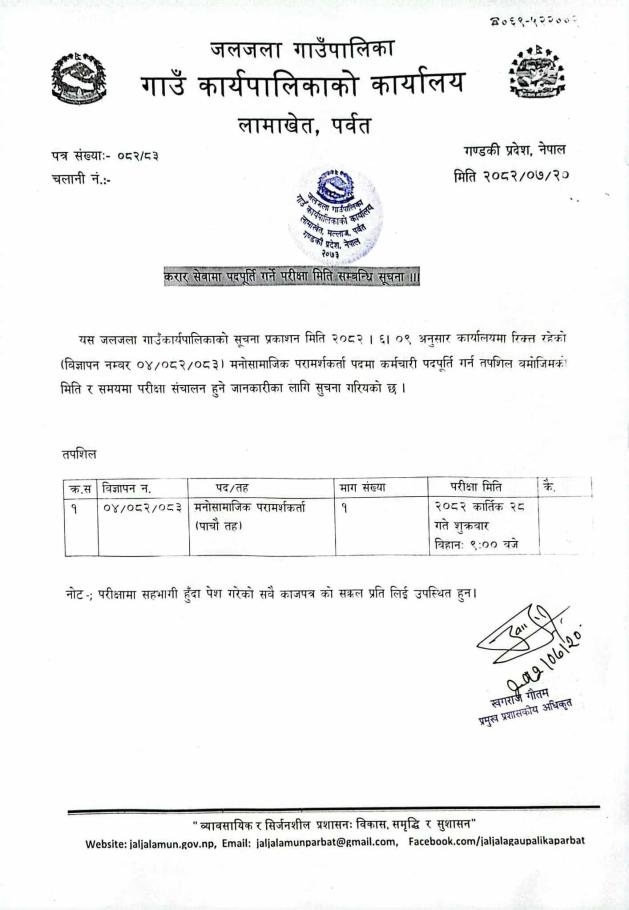 करार सेवामा पदपूर्ति गर्ने परिक्षा संचालन मिति सम्बन्धि सूचना