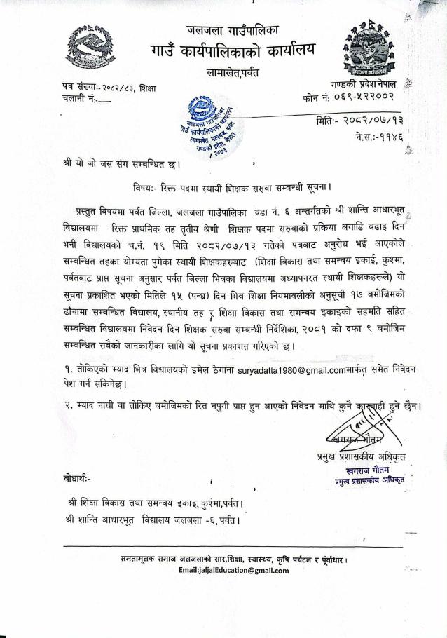 भेटनरी अस्पताल तथा सेवा विज्ञ केन्द्र, पर्वतको आवेदन पेश गर्ने सम्बन्धी सूचना !!