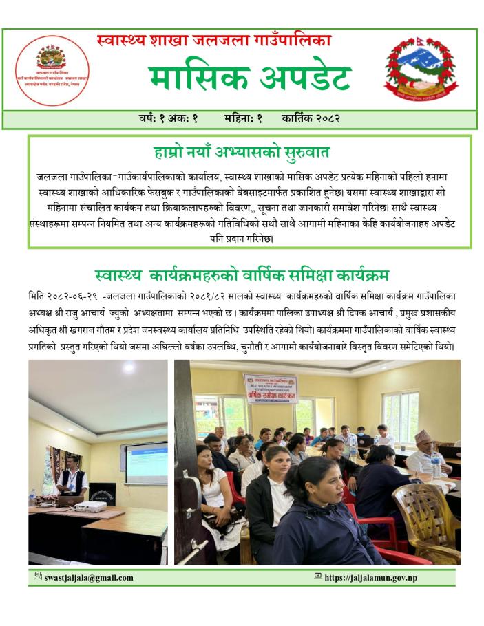 स्वास्थ्य शाखा जलजला गाउँपालिका -मासिक अपडेट