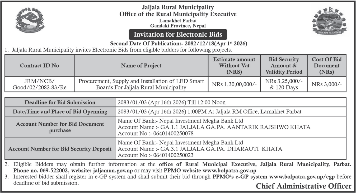 सार्वजनिक खरिद/बोलपत्र सूचना