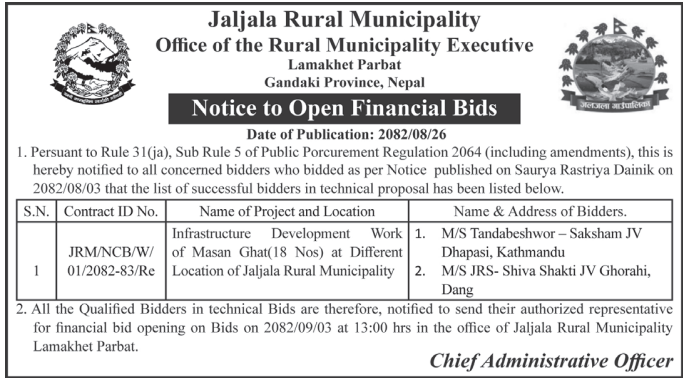 सार्वजनिक खरिद/बोलपत्र सूचना