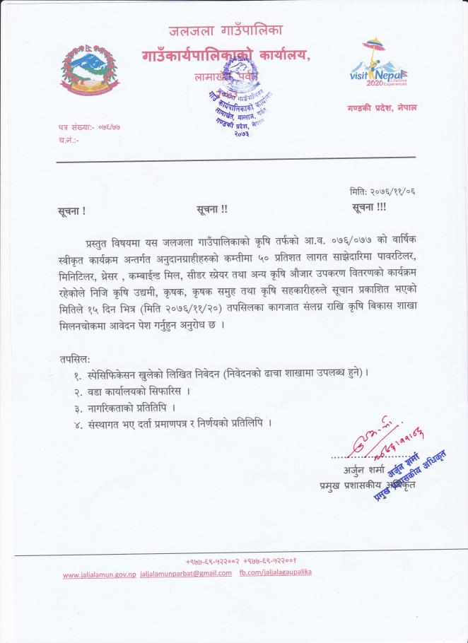 जलजला गाउँपालिकाको सूचना !!