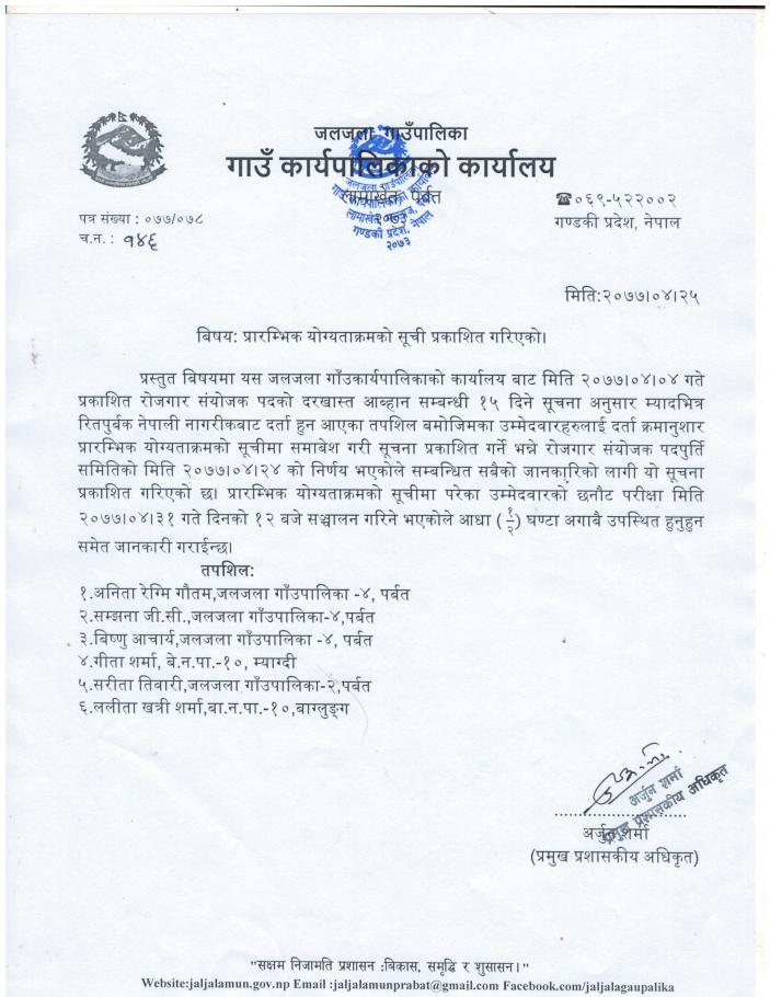 प्रारम्भिक योग्गेता सूचि प्रकासित गरिएको बारे ।