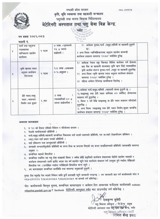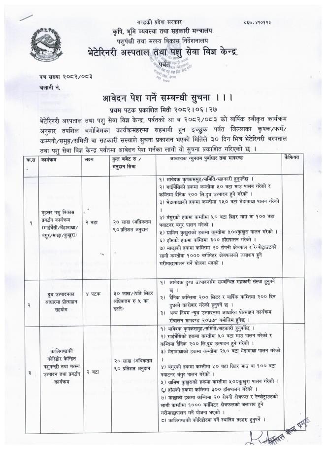 भेटनरी अस्पताल तथा सेवा विज्ञ केन्द्र, पर्वतको आवेदन पेश गर्ने सम्बन्धी सूचना !!