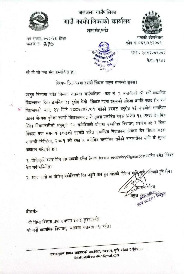 भेटनरी अस्पताल तथा सेवा विज्ञ केन्द्र, पर्वतको आवेदन पेश गर्ने सम्बन्धी सूचना !!